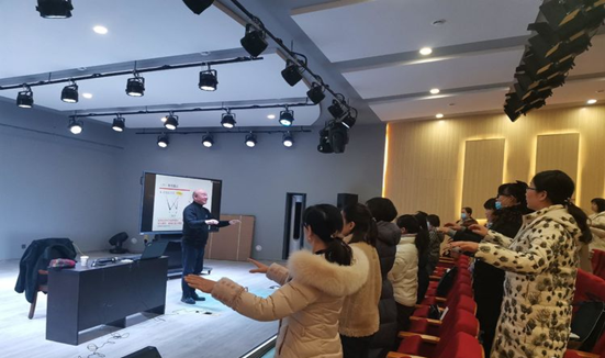 1月10日, 河南大学艺术学院教授、硕士生导师陈家海应邀来到金年会金字招牌诚信至上,在艺术楼八音讲堂为2020年河南省骨干教师培育项目-小学音乐培训班的全体学员讲授合唱指挥公开课,公司副经理陈新宇主持。