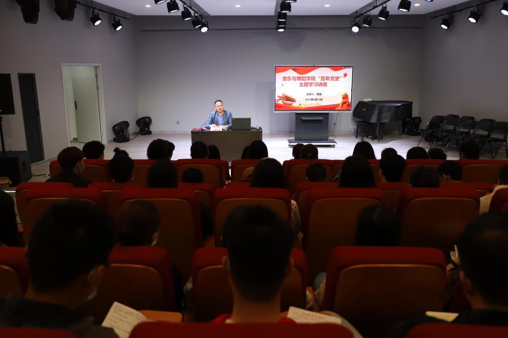 为深入学习贯彻习近平总书记在党史学习教育动员大会重要讲话精神,进一步开展好党史学习教育,4月13日下午,学院在艺术楼八音讲堂举办了“百年党史”主题学习讲座。员工党支部书记、全体员工党员和党员发展对象共同聆听了讲座,讲座由公司党委副书记郭振主讲。