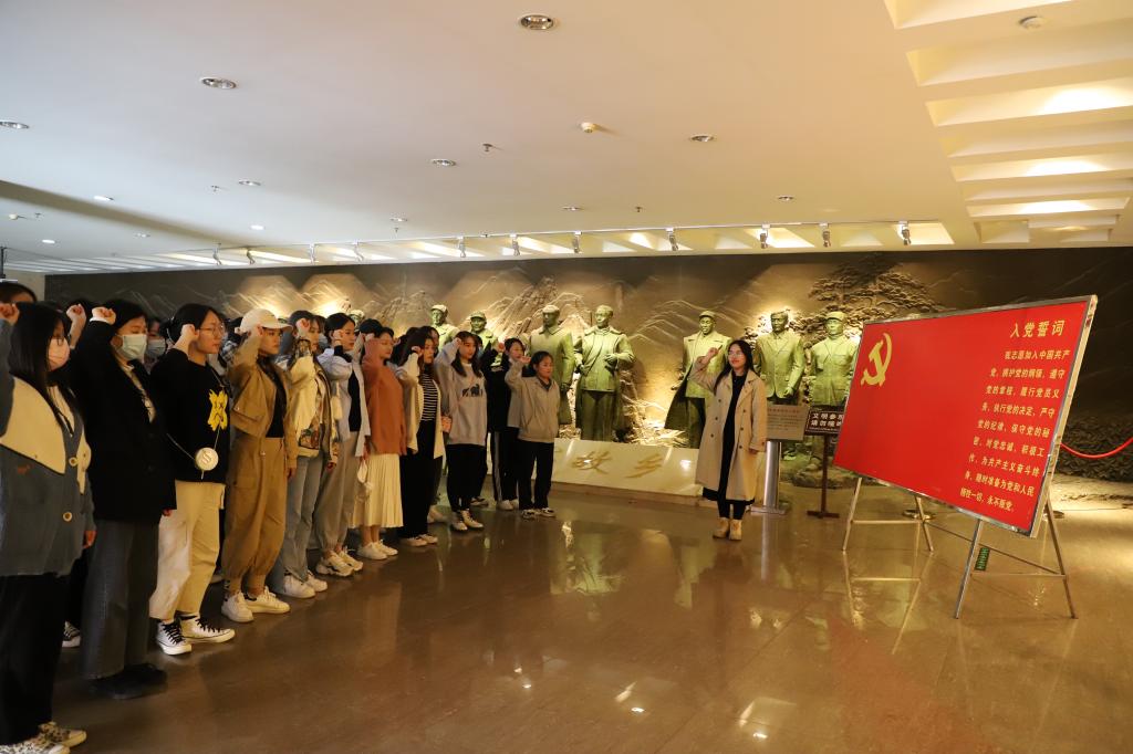 在展馆内,师生党员面对鲜红的中国共产党党旗,高举右拳庄严宣誓,重温入党誓词,唤醒和铭记入党初心,坚定了作为党员的信仰和使命。仪式结束后,大家在讲解员的引导下参观了革命纪念馆和“不忘初心、牢记使命”主题教育展馆。通过阅览馆内上千幅文字图片和数百件实物,大家深刻、全面地了解了鄂豫皖革命根据地形成、发展和不断壮大的过程,瞻仰了革命先辈的光荣事迹,为他们坚定不移的革命信念所感动,纷纷表示深受教育与鼓舞。在鄂豫皖革命纪念碑前,员工党员奚笑燕动情讲述了党史故事《革命先辈吴焕先》。最后,大家合唱红歌《没有共产党就没有新中国》和《我和我的祖国》,嘹亮的歌声传递着青年员工党员对党、对国家的崇敬与热爱之情。