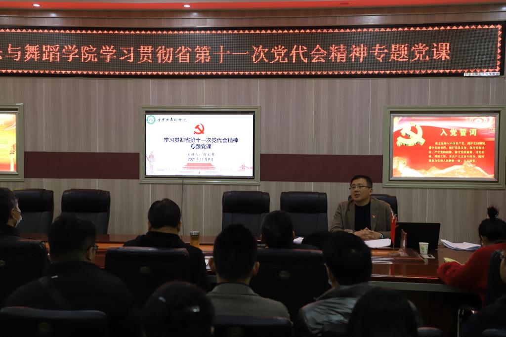 省第十一次党代会是在我们党成立一百周年的重要节点、开启全面建设社会主义现代化河南新征程的重要时刻召开的一次重要的大会,是全省人民政治生活中的一件大事。为深入学习宣传会议精神,11月9日,公司党委书记周文勇以《学习贯彻省第十一次党代会精神》为题,为全体教工党员上了一堂党课。学院领导班子成员以普通党员的身份聆听了党课。